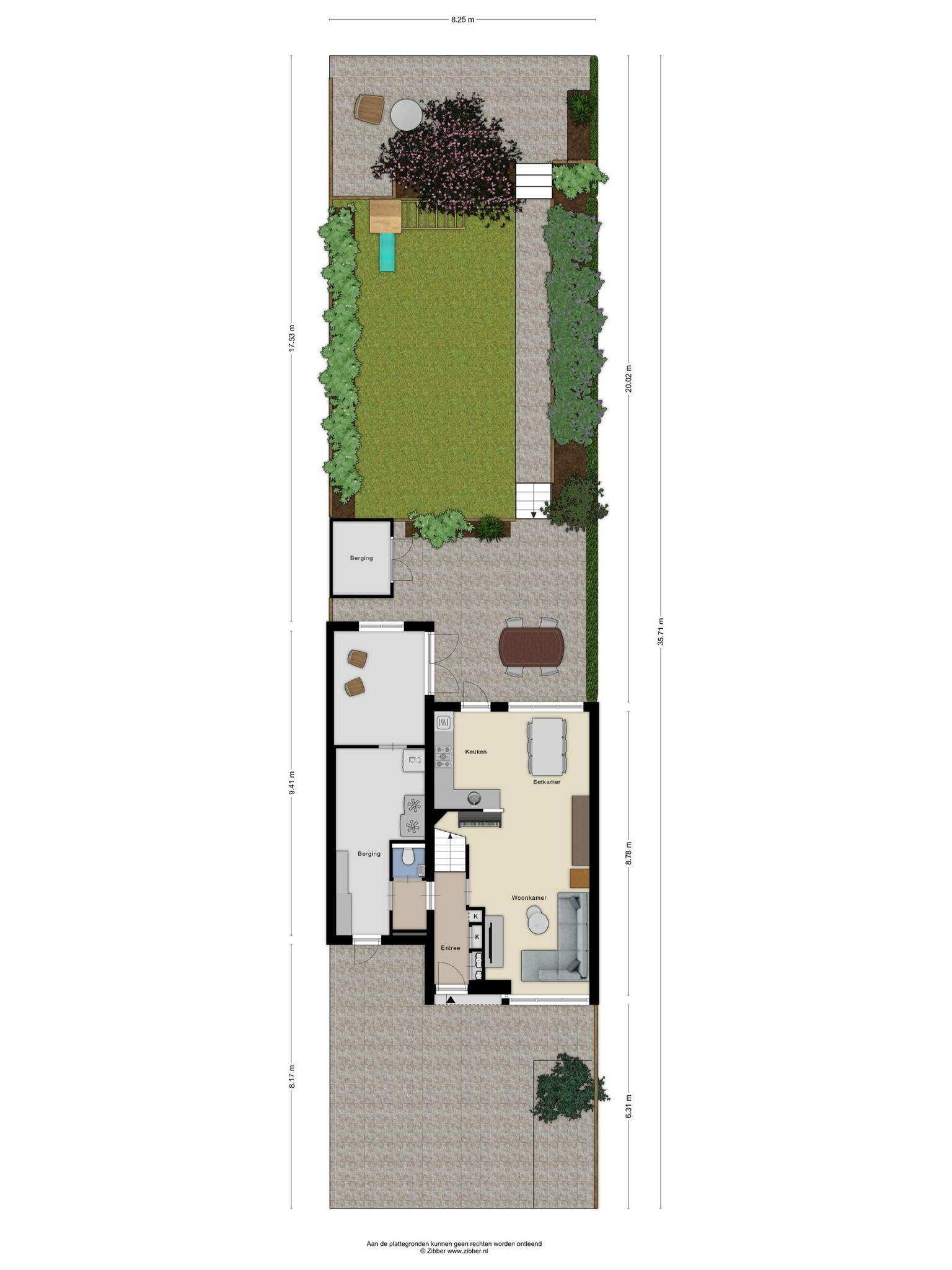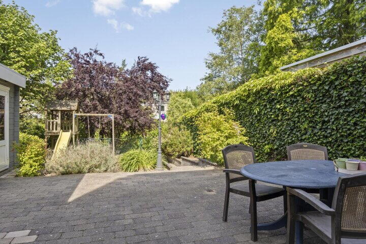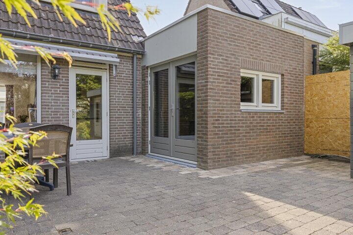 De achtertuin is een waar paradijs. Direct aan de woning is een ruim betegeld terras, ideaal voor een eethoek of lounge set. Via de berging, met openslaande deuren, kun je zelfs een bar of buitenkeuken creëren met een directe doorloop naar buiten.
